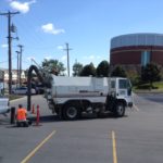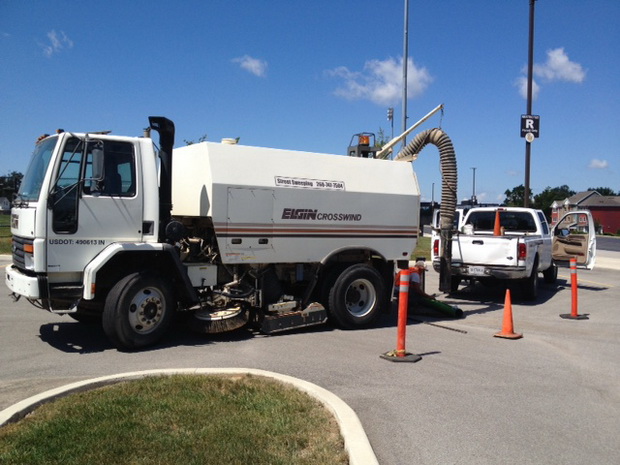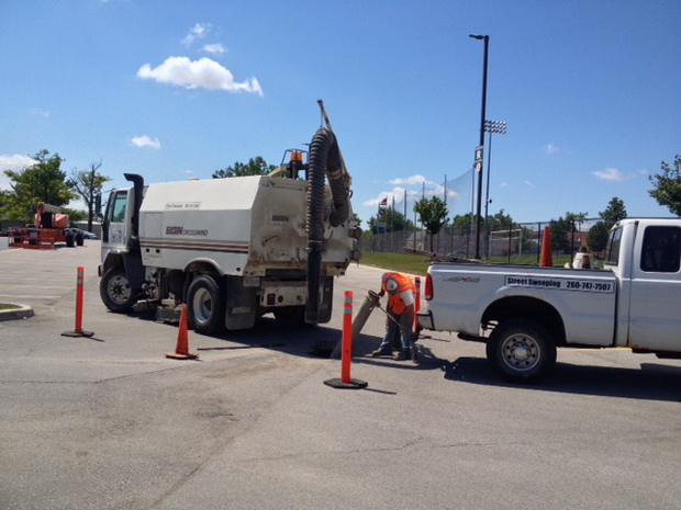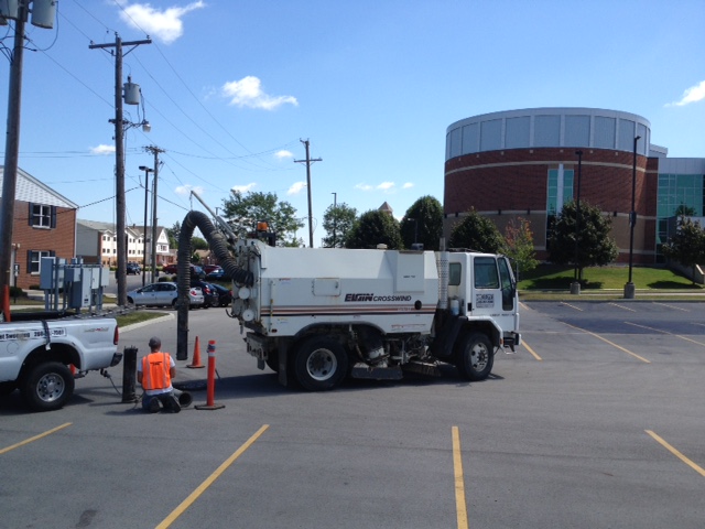 -Sweep parking lot, entrance ways, walkways and drive up lanes